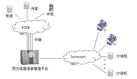 由于使用VoIP技術(shù),因此需要同力信通語音平臺連接到Internet上,實際上,目前大部分的設(shè)備都是和Internet連接的,一般用來遠(yuǎn)程管理和維護(hù)。語音平臺通過專線、ADSL、撥號連接Internet均可。