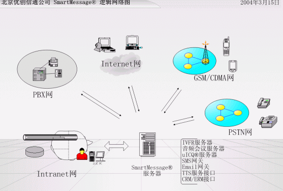 完全自主版權(quán)的 SmartMessage Pro®是專為企業(yè)級(jí)使用單位設(shè)計(jì)的通信服務(wù)平臺(tái),提供多種通信一體化解決方案,如統(tǒng)一消息、語音郵件、交互會(huì)議、IVR、手機(jī)短信/傳真/電話服務(wù)及呼叫中心,這些應(yīng)用可無縫集成在一套標(biāo)準(zhǔn)化平臺(tái)上,是全方位實(shí)施CRM系統(tǒng)和電子商務(wù)服務(wù)解決方案的重要組成。