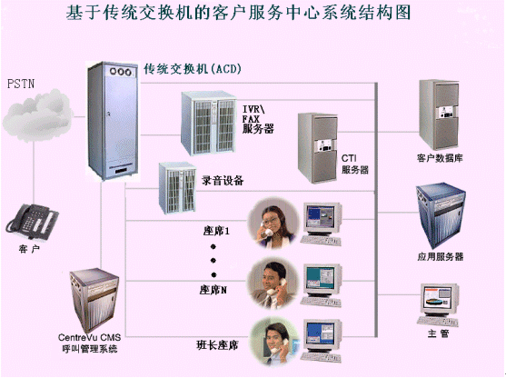 但是由于傳統(tǒng)交換機(jī)在語(yǔ)音資源、傳真資源等呼叫中心基本信息資源處理能力方面的匱乏,必須通過(guò)語(yǔ)音板卡和PC機(jī)的方式解決,有時(shí)因?yàn)橄到y(tǒng)容量大,甚至需要多臺(tái)共同服務(wù),其IVR(交互式語(yǔ)音應(yīng)答)和FAX、CTI服務(wù)器卻只能達(dá)到PC機(jī)標(biāo)準(zhǔn)。所以開(kāi)發(fā)出的系統(tǒng)雖然前置交換為電信級(jí)的標(biāo)標(biāo)準(zhǔn),但是其整體性能、穩(wěn)定性仍受PC插卡方式的影響。另外,由于交換機(jī)和IVR、FAX、CTI等之間的相互連接會(huì)受其密合程度和其他外來(lái)因素影響,會(huì)造成一些不可預(yù)知的系統(tǒng)故障。不僅交換機(jī)+CTI服務(wù)器+IVR服務(wù)器(語(yǔ)音板卡+PC機(jī))+傳真服務(wù)器(傳真卡+PC機(jī))+錄音模塊設(shè)備(監(jiān)控錄音卡+PC機(jī))的建設(shè)成本非常高,并且編程開(kāi)發(fā)較復(fù)雜。