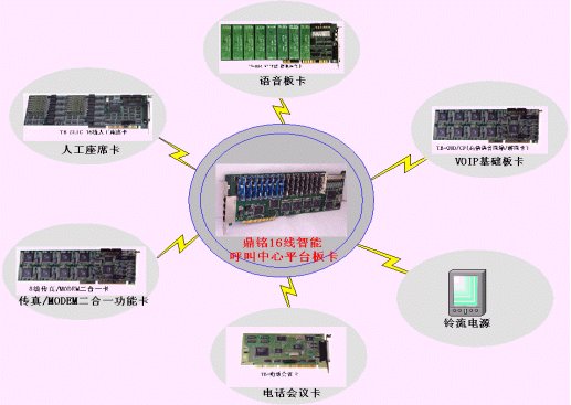 鼎銘公司將在本月隆重推出新一代的板卡級(jí)呼叫中心硬件平臺(tái)------DM016A/PCI多功能卡。DM016A/PCI系列語(yǔ)音卡是我公司十年來(lái)CTI技術(shù)的結(jié)晶,她涵括了目前市場(chǎng)中模擬語(yǔ)音處理卡、人工座席卡、傳真/MODEM卡、電話會(huì)議卡、高倍語(yǔ)音壓縮/解壓(VOIP)卡、高阻抗監(jiān)控錄音卡等功能和一體化的優(yōu)點(diǎn),并自帶鈴流電源,不需另外接接線盒和鈴流電源。在該卡上能開(kāi)發(fā)出PBX、ACD、IVR、FAX/MODEM服務(wù)器、Agnet(座席)子、預(yù)約呼出、錄音監(jiān)控、電話會(huì)議、VOIP(需第三方的H.323協(xié)議)網(wǎng)關(guān)等多媒體呼叫中心所需的所有功能模塊、子系統(tǒng)。