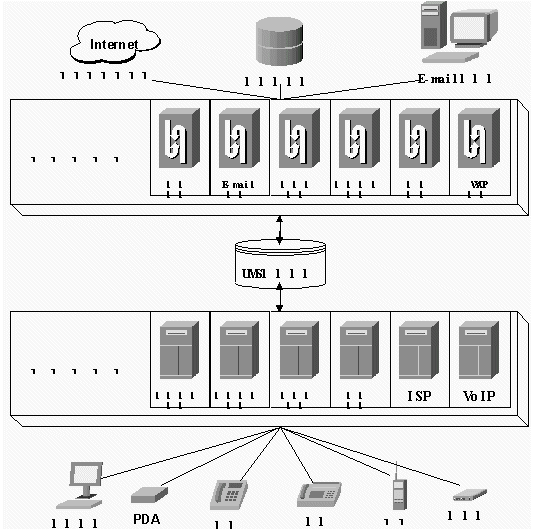 UMS系統(tǒng)將電話網(wǎng)、尋呼網(wǎng)、移動(dòng)網(wǎng)、互聯(lián)網(wǎng)相互融合,在各個(gè)不同網(wǎng)絡(luò)間提供通信和信息交換,向最終用戶提供在任何時(shí)間、任何地點(diǎn),以任何方式(如人工電話、自動(dòng)語音、自動(dòng)傳真、尋呼、手機(jī)短訊、手機(jī)上網(wǎng)、電子郵件、WWW瀏覽等)的個(gè)人通信服務(wù)、個(gè)人化信息內(nèi)容服務(wù)和個(gè)人化電子商務(wù)服務(wù)。