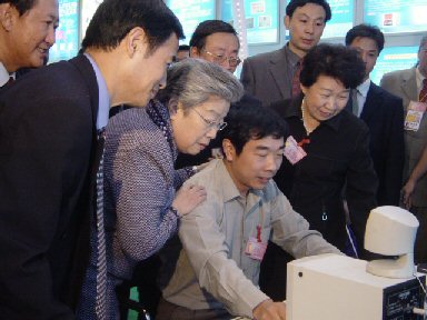 C&E 2.2、嵌入式產(chǎn)品InterSound 3.0和Talking Book電子書等。語音合成給觀眾帶來了全新的感受,流暢自然的語音合成、抑揚頓挫的唐詩誦讀吸引了無數(shù)參觀者駐足、觀賞。國務(wù)院副總理吳儀同志參觀安徽展區(qū)時,親臨訊飛展區(qū),對訊飛的語音技術(shù)表現(xiàn)出強烈興趣。科大訊飛陳燕總監(jiān)向吳儀副總理簡要匯報了中文語音產(chǎn)業(yè)及科大訊飛公司的發(fā)展情況,并親自演示了訊飛電信級和芯片級語音產(chǎn)品。吳儀臉上不時露出微笑,鼓勵訊飛再接再厲,把民族語音產(chǎn)業(yè)做大做強。