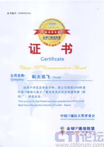 科大訊飛榮獲中國(guó)IP通信大獎(jiǎng)