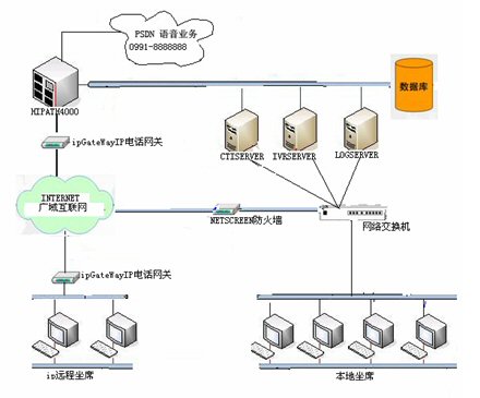采用Juniper的netscreen-5GT的防火墻,在其內部做端口映射,結合遠程ip電話。這樣的話可以使遠程的Crm登錄到cti,外線呼入可以將其轉到遠程坐席上。對于公司將來的擴展新的營業(yè)點提供了技術方案。