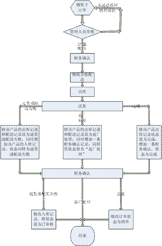 在呼叫中心系統(tǒng)中,為了更好地幫助企業(yè)進(jìn)行銷售管理,UltraCRM系統(tǒng)設(shè)有進(jìn)銷存管理。從產(chǎn)品的采購、入庫出庫、退貨、返廠處理、庫存管理、庫存盤點(diǎn)到財(cái)務(wù)確認(rèn)都有一套完整的流程。參見圖7.22和7.23的產(chǎn)品入庫流程和出庫流程。所有在呼叫中心中進(jìn)行銷售的產(chǎn)品數(shù)據(jù)都分類保存在系統(tǒng)的數(shù)據(jù)庫中,坐席人員可以根據(jù)產(chǎn)品型號、名稱、關(guān)鍵字等進(jìn)行分類查詢。各類產(chǎn)品的基本參數(shù)、介紹也都包含在產(chǎn)品數(shù)據(jù)庫中,坐席人員可以很快地查到一項(xiàng)產(chǎn)品的基本信息,提高與用戶溝通的工作效率。