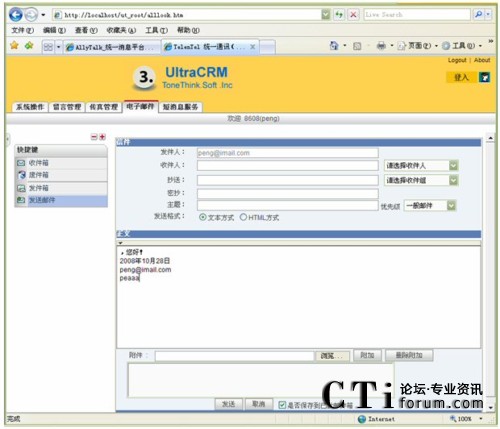 電子郵箱具有與Notes或OutLook相同的功能,可以通過設定Email服務的參數(shù),實現(xiàn)公司內(nèi)部收發(fā)Email,或通過Email服務器實現(xiàn)與Internet的通信。
