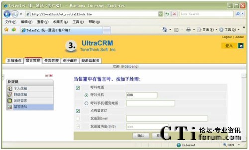 電話通知:如果個人信箱有新留言則可設置留言通知到分機、手機、外線電話等。