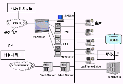 呼叫中心是伴隨著激烈的市場競爭和企業(yè)成功的經(jīng)營理念而生,既低端的價格競爭向高端的服務(wù)競爭以及對企業(yè)核心客戶的保持。它融合了傳統(tǒng)的公共電話網(wǎng)PSTN,計算機網(wǎng)絡(luò),以及數(shù)據(jù)庫存儲技術(shù)和自動語音應(yīng)答IVR等技術(shù),將語音與數(shù)據(jù)資源有效的結(jié)合,為企業(yè)在技術(shù)上保證核心客戶的高忠誠度打下了堅實的基礎(chǔ)。