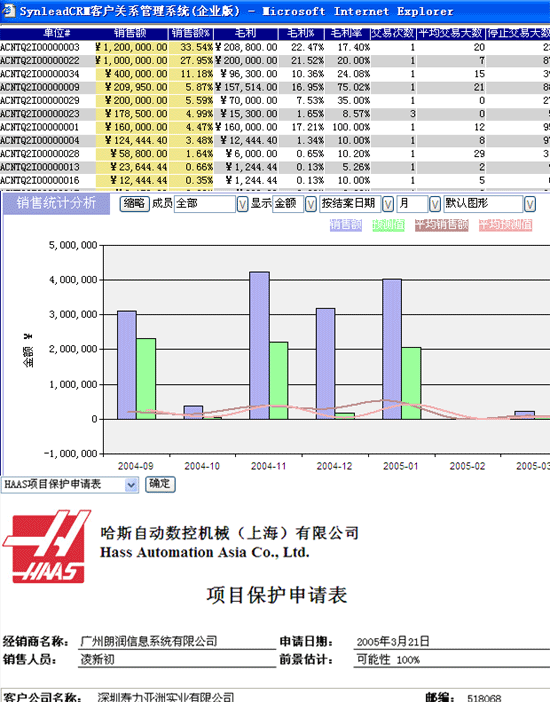 ,"可擴(kuò)展樣式語言轉(zhuǎn)換")來制作。這種語言也是通用的,并且容易掌握。為了獲得更強(qiáng)大的功能,XSLT允許插入Javascript等一些其他語言或者插件。在這些語言的操縱下,結(jié)果樹的輸出形式是非常靈活的。下圖是國(guó)內(nèi)知名的CRM軟件--SynleadCRM企業(yè)版將其XML數(shù)據(jù)源轉(zhuǎn)換成的一些報(bào)表和圖表: