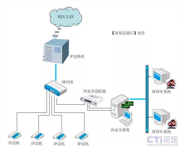 【瑞明達(dá)通信】是國內(nèi)較早從事專業(yè)計(jì)算機(jī)電話語音系統(tǒng)(CTI)產(chǎn)品的開發(fā)商, 在客戶交互式解決方案行業(yè)中有十多年的從業(yè)經(jīng)驗(yàn),具備雄厚的語音產(chǎn)品開發(fā)能力。最近幾年,基于 IP 的下一代通信,正在以前所未有的速度改變著全世界的通信架構(gòu)和商業(yè)格局!救鹈鬟_(dá)通信】作為錄音技術(shù)的領(lǐng)先廠商,就已經(jīng)具有前瞻性的潛心致力于基于IP通訊線路的多媒體記錄解決方案的研發(fā),RMD_VoIPlog錄音系統(tǒng)是由【瑞明達(dá)通信】自行開發(fā)研制的新一代IP錄音系統(tǒng)。該系統(tǒng)在記錄VoIP語音的同時(shí),所需的語音資源通過軟件方式或硬件平臺直接由網(wǎng)絡(luò)中的RTP等數(shù)據(jù)流獲取,無須和座席分機(jī)或中繼線進(jìn)行并接,因此是一種軟件/硬件分別實(shí)現(xiàn)的錄音系統(tǒng),是真正的基于IP 的錄音解決方案。RMD_VoIPlog錄音系統(tǒng),是以數(shù)字記錄、數(shù)據(jù)庫查詢、光盤存儲等先進(jìn)技術(shù)為手段,為通話語音的錄制、管理提供了一種先進(jìn)、科學(xué)而又行之有效的方法。二、RMD_VoIPlog錄音系統(tǒng)運(yùn)行環(huán)境
