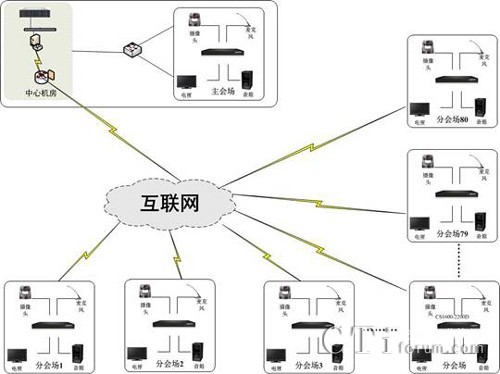 華平股份為雛鷹農(nóng)牧建設(shè)的視頻會議系統(tǒng)覆蓋雛鷹農(nóng)牧辦公區(qū)總部和新鄭周邊鄉(xiāng)村70多個養(yǎng)殖場,以及開封尉氏分公司。辦公區(qū)總部使用一臺MCU,總部網(wǎng)絡(luò)使用聯(lián)通百兆光纖接入和移動10兆光纖接入。其他分會場全部采用電話線ADSL撥號上網(wǎng)。主會場采用CS2800全高清視頻會議終端,達到高清視頻效果;分會場采用CS1800標清終端+AV300標清攝像機,滿足標清視頻通信應(yīng)用的需求。