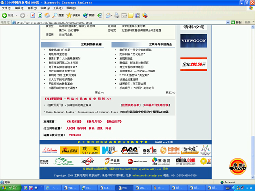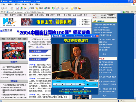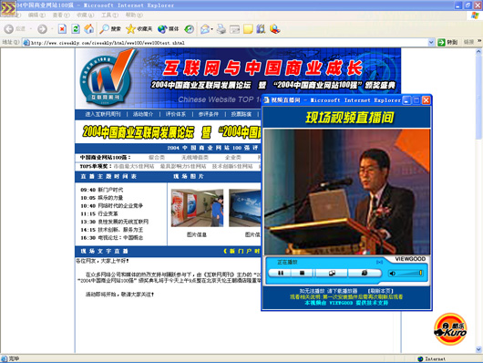 作為此次活動全程流媒體直播技術(shù)提供商VIEWGOOD(www.viewgood.com)商務(wù)主管在活動現(xiàn)場說:“中國大陸的上網(wǎng)用戶總?cè)藬?shù)即將突破1億,中外商業(yè)網(wǎng)站的資本運(yùn)作空前活躍,3G、IPv6等新技術(shù)將催生互聯(lián)網(wǎng)的新一輪變革,網(wǎng)絡(luò)媒體正在從“第四媒體”快速走向“第一媒體”,致力為中國互聯(lián)網(wǎng)媒體服務(wù)的VIEWGOOD和所有的網(wǎng)站一樣,既面臨著激烈的挑戰(zhàn),更面臨著難得的發(fā)展機(jī)遇。無論是成長最快的網(wǎng)站、最具潛力的網(wǎng)站,還是創(chuàng)新最佳的網(wǎng)站,都是VIEWGOOD的合作伙伴。我們將以國際最先進(jìn)的流媒體技術(shù)服務(wù)于中國互聯(lián)網(wǎng)!