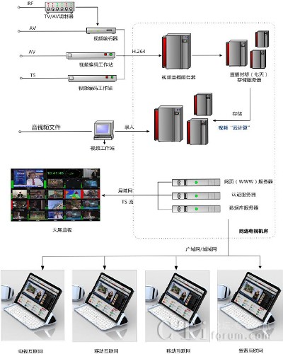 網(wǎng)絡(luò)廣播既有傳統(tǒng)廣播電視靈活生動(dòng)的表現(xiàn)形式,又有互聯(lián)網(wǎng)按需獲取的交互性,如何組織、存儲(chǔ)、管理、發(fā)布信源,充分利用電視臺(tái)豐富的資源,提供個(gè)性化的服務(wù),是辦好電視媒體網(wǎng)站的關(guān)鍵。網(wǎng)絡(luò)與電視互利互惠、優(yōu)勢(shì)互補(bǔ)將是當(dāng)前電視與網(wǎng)絡(luò)的最佳狀態(tài)。放眼世界和未來(lái),可以預(yù)見:在全球邁向“信息時(shí)代”的今天,電視將與網(wǎng)絡(luò)在競(jìng)爭(zhēng)中走向不斷融合、創(chuàng)新進(jìn)而達(dá)到新的繁榮。目前開辦網(wǎng)絡(luò)電視臺(tái)是各級(jí)廣電單位最為行之有效的解決方案,并成功地應(yīng)用于實(shí)際。下文筆者主要將在構(gòu)建網(wǎng)絡(luò)電視臺(tái)時(shí)的高清TS流直播技術(shù)難題,以及實(shí)際應(yīng)用中的解決方案,與各位同行共享。