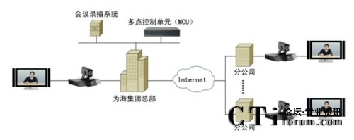 科達(dá)視頻會(huì)議解決方案就部署而言非常簡單:為海集團(tuán)深圳總部的機(jī)房架設(shè)一臺(tái)多點(diǎn)控制單元(MCU),總部會(huì)議室、各分公司的會(huì)議室則各部署一套視頻會(huì)議終端?偛繋挒10/100M,各地分公司均通過普通ADSL接入。系統(tǒng)拓?fù)鋱D如下: