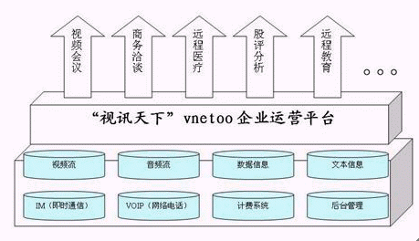 "視訊天下"VNETOO運(yùn)營平臺就是應(yīng)用了新一代完美網(wǎng)絡(luò)視頻會議技術(shù)的典范,它具有優(yōu)質(zhì)的音視頻效果和強(qiáng)大的數(shù)據(jù)功能,是集"視頻+語音+數(shù)據(jù)+IM(即時(shí)通信)+VOIP(網(wǎng)絡(luò)電話)+計(jì)費(fèi)系統(tǒng)+后臺管理"的基于IP網(wǎng)絡(luò)世界一流視訊服務(wù)提供平臺,它革命性地開創(chuàng)了視訊運(yùn)營領(lǐng)域的全新模式。