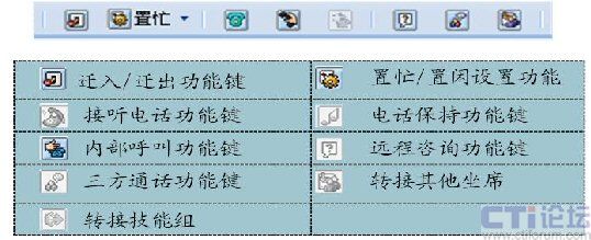基于業(yè)務(wù)支撐平臺(tái)的JTAPI開(kāi)發(fā)包所開(kāi)發(fā)的Applet程序,實(shí)現(xiàn)座席員所需要的話務(wù)功能,可以和頁(yè)面進(jìn)行交互;軟電話條如下: