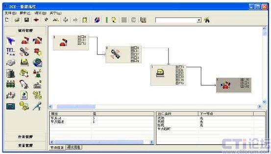 簽入、簽出、置閑、置忙、應(yīng)答、掛機(jī)、保持/取回、咨詢(xún)/取消咨詢(xún)、兩路切換、轉(zhuǎn)接、三方會(huì)議、轉(zhuǎn)技能組、外呼等;豐富的業(yè)務(wù)系統(tǒng)功能包括:工單管理、知識(shí)庫(kù)、客戶(hù)管理、質(zhì)檢管理、外撥管理、業(yè)務(wù)統(tǒng)計(jì)報(bào)表、公告板、郵件管理、系統(tǒng)管理、前臺(tái)業(yè)務(wù)(坐席)功能、班長(zhǎng)功能、數(shù)據(jù)同步、全程錄音、業(yè)務(wù)處理等,這些功能不作詳細(xì)介紹。IVR流程也是采用非常先進(jìn)的圖形化流程編輯器,通過(guò)簡(jiǎn)單的拖、拉圖標(biāo)方式即可實(shí)現(xiàn)對(duì)IVR流程的定制:
