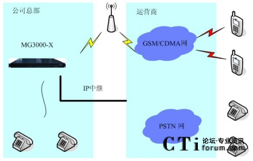 運(yùn)營商可以為一些企業(yè)提供免費(fèi)通話的業(yè)務(wù),企業(yè)內(nèi)部的手機(jī)用戶互相撥打,費(fèi)用全免。將這種手機(jī)號(hào)碼(SIM卡)內(nèi)置到企業(yè)的IPPBX(MG3000-X)內(nèi),即可提供很多應(yīng)用。