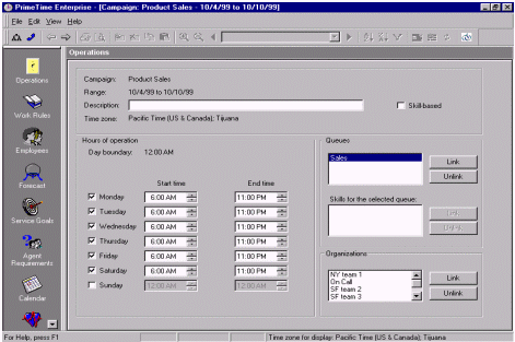 絕大多數(shù)的WFMS可以通過歷史數(shù)據(jù)和人員情況自動生成排班表。而且它也只是簡單的根據(jù)呼叫中心的運(yùn)營時間來排班。舉個例子,某個呼叫中心在排班是有兩個班,一個工作時間是早7點(diǎn)到下午3點(diǎn),另一個是早九點(diǎn)到晚五點(diǎn),這就意味著不僅要安排早、晚休息,還要顧及到午休的時間。休息的安排要保證能夠在電話的持續(xù)中也能有持續(xù)的人員保證電話量。在這個自動化軟件的之中還有一個因素要能夠?qū)崿F(xiàn)自動化--人的因素。例如:Mary和Jane想同時去吃午餐,然而自動化的排班表并不是這樣的。然而主管根據(jù)當(dāng)時的話務(wù)量情況和工作狀況以及工作規(guī)范批準(zhǔn)了Mary和Jane共享午餐的要求,而WFMS就要能夠處理這樣很有可能發(fā)生,而且是合理的情況。排班表的更改應(yīng)該就是簡單的拖拽圖標(biāo)就應(yīng)該能夠?qū)崿F(xiàn)的功能,并且能夠在這種更改會對預(yù)測的話務(wù)量差生不好影響時,拒絕這種拖拽行為。