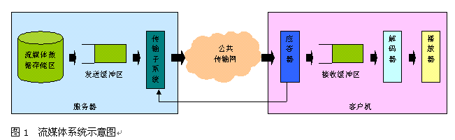 實時自適應網(wǎng)絡帶寬的流媒體傳送技術,是上海清鶴數(shù)碼科技公司的一項可大幅提高流媒體寬帶傳送過程中的關鍵服務質(zhì)量瓶頸的國際技術專利。我們知道,目前制約流媒體寬帶應用發(fā)展的核心問題在于服務質(zhì)量。簡單地說,由于因特網(wǎng)的狀況是不可靠的,其帶寬、負荷等變化劇烈,這難以滿足流媒體寬帶業(yè)務的實時性服務質(zhì)量要求,并常常造成播放卡殼、延遲、視頻質(zhì)量抖動劇烈等不良情況,給使用者感官造成很大影響。所以解決好流媒體寬帶應用的服務質(zhì)量問題對于流媒體寬帶應用是極為重要的。如圖1所示,在一般的流媒體寬帶系統(tǒng)里,視頻服務器通過網(wǎng)絡向客戶機實時傳送流媒體信息。