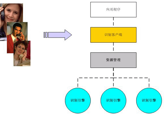 一個語音識別系統(tǒng),主要包含有語音識別的客戶端模塊、資源管理模塊、識別引擎以及與應用相對應的應用程序。