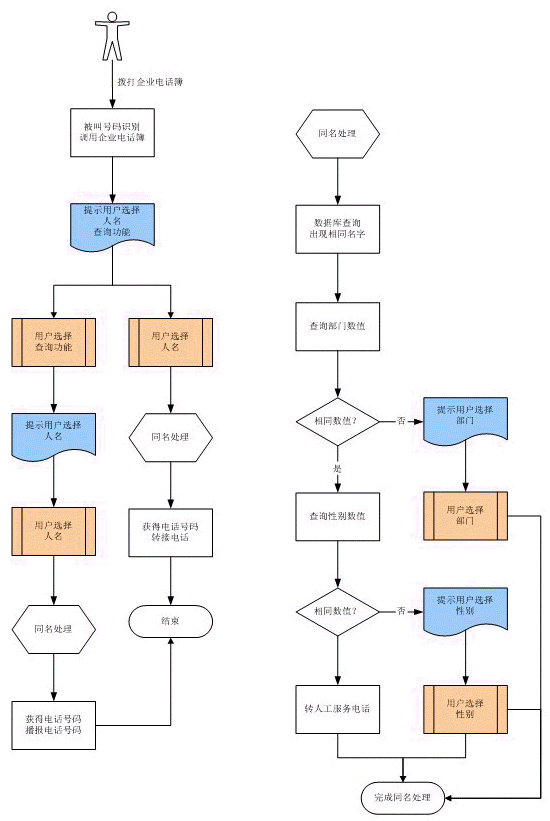當電話簿記錄中出現同名時,可以定義同名的區(qū)分條件,如不同部門,不同性別等。在語音識別時,根據區(qū)分條件提示主叫選擇。