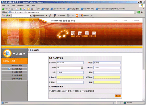 結合平臺座席與個人語音電話本實現給注冊用戶實現個人秘書服務。