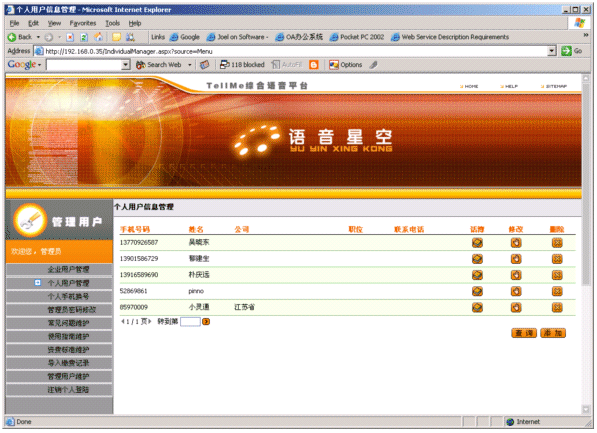 提供企業(yè)電話簿管理界面。企業(yè)通過電話簿管理界面對電話簿記錄和功能進行修改、增加、設定等管理。