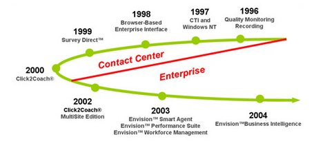 Envision 1994年成立于美國西北部主要都市西雅圖,致力于客服質量管理應用軟體與服務的世界領導品牌;以客戶實際運營需求為產(chǎn)品研發(fā)導向,進一步整合品質監(jiān)測暨績效優(yōu)化解決方案,提供客戶單一完整操作便利的全方位的解決方案。因此多年來不但獲得市場廣大客戶的系統(tǒng)建置支援與使用效益證言愛護,更榮獲許多專業(yè)高階管理精心評選出主要呼叫中心產(chǎn)品應用與服務等大獎。
