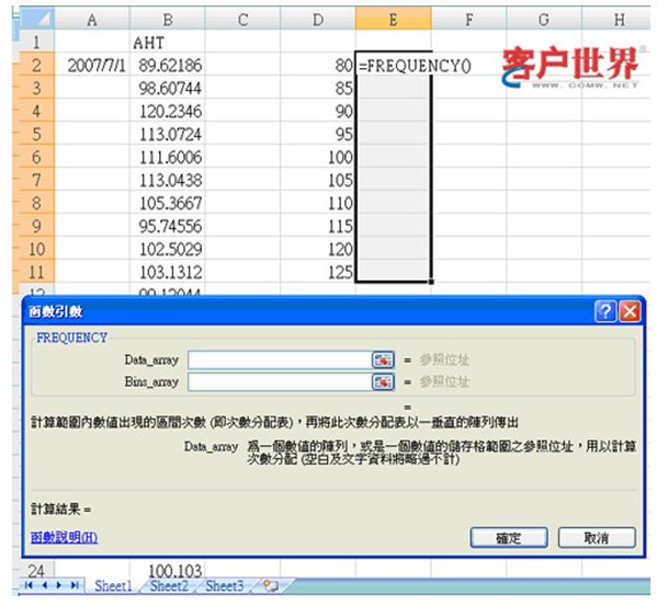這就是微軟產(chǎn)品最特別的地方:你不能按“確定”這個鍵,如果按“確定”,你就死定了!筆者曾經(jīng)為這件事,研究了好久,整個Help的幫助畫面,也沒說要怎么做,終于在一個地方找到:必須同時按三個鍵:Shift、Ctrl和回車(Enter)。同時按下這三個鍵,就會得到你要的頻次,如下圖的E這個數(shù)列。