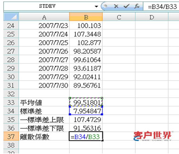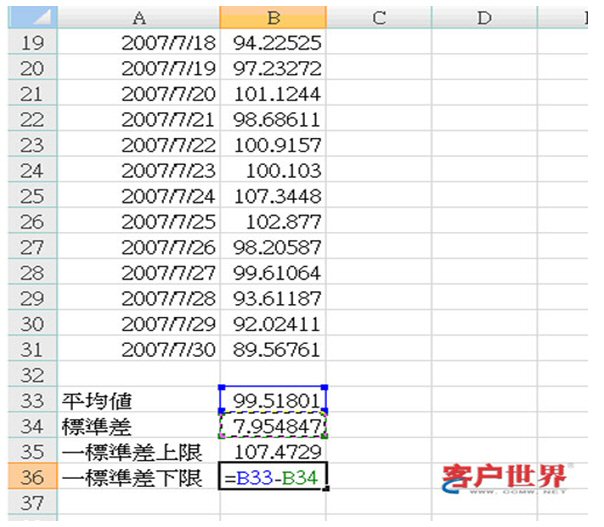 圖說:B35是一個標準差上限,而B36是一個標準差下限
