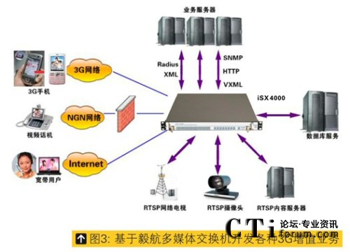 隨著中國3G用戶的日益增多,基于3G網(wǎng)絡(luò)的增值業(yè)務(wù)也日益受到各大運(yùn)營商重視,而且運(yùn)營商也寄希望于形形色色的增值業(yè)務(wù)能夠帶動(dòng)3G用戶的增長,針對這種狀況以及國內(nèi)三種運(yùn)營商制式(TD-SCDMA、WCDMA、CDMA2000),毅航發(fā)布專門針對3G增值業(yè)務(wù)或2G-3G混合增值業(yè)務(wù)的真正一體化開發(fā)平臺,基于此平臺開發(fā)者無需關(guān)心3G網(wǎng)絡(luò)接口、3G網(wǎng)絡(luò)制式、3G網(wǎng)絡(luò)信令及3G視頻編解碼而直接開發(fā)3G業(yè)務(wù)流程即可,是目前國內(nèi)外最簡單、單機(jī)承載容量最大的3G增值業(yè)務(wù)開發(fā)平臺,是在毅航通信 iSX4000 通用業(yè)務(wù)平臺的基礎(chǔ)上增加視頻模塊即可將原來在2G上的所有應(yīng)用平滑升級到3G,升級周期只需要1-2周即可,因此基于毅航增值業(yè)務(wù)平臺的3G示范應(yīng)用也很快會(huì)在中國三個(gè)不同制式的3G網(wǎng)絡(luò)上開通。