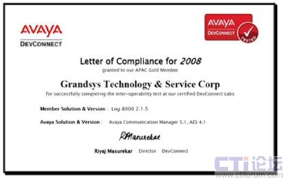2008年7月 —Grandsys(宏盛高新技術(shù)有限公司)宣布其自創(chuàng)品牌[Grandsys LOG8000 錄音與質(zhì)檢解決方案]正式通過AVAYA DevConnect 的認(rèn)證。Grandsys正是全球?yàn)閿?shù)不多的已經(jīng)通過該項(xiàng)認(rèn)證的AVAYA 合作伙伴之一,包含知名廠家Nice及Verint等,這代表Grandsys的技術(shù)已達(dá)到國際知名廠家的水平, 國內(nèi)客戶也因此有機(jī)會享受到最優(yōu)質(zhì)的產(chǎn)品及服務(wù)。