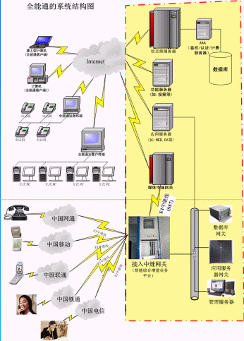 在和創(chuàng)世紀全能通的基礎下電信、網(wǎng)通、移動、聯(lián)通、鐵通、衛(wèi)通等電信運營商可用來做下一代網(wǎng)絡(NGN)業(yè)務及運營,虛擬電信運營商和增值業(yè)務服務商、新興電信運營商開展各種電信運營、增值業(yè)務和搶占語音市場的利器。(具體有關‘如何用全能通平臺切入語音市場’,請來來電咨詢)