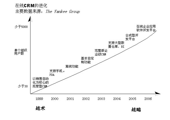 應(yīng)用軟件托管并不是新概念,上世紀(jì)末,隨著互聯(lián)網(wǎng)泡沫的膨脹和迅速萎縮,全球誕生又快速消失了數(shù)百家ASP(應(yīng)用軟件托管服務(wù)商)。只有少數(shù)幾家美國(guó)應(yīng)用軟件公司認(rèn)識(shí)到銷售自動(dòng)化和客戶服務(wù)軟件的通用性最強(qiáng),深耕于CRM的銷售自動(dòng)化或客戶服務(wù)模塊,最終堅(jiān)持了下來(lái)。他們鎖定以要求低價(jià)、快速實(shí)施和外包IT的中小企業(yè)為目標(biāo)客戶,開(kāi)辟了應(yīng)用軟件托管的發(fā)展道路。與此同時(shí),傳統(tǒng)應(yīng)用軟件商Siebel、SAP、PEOPLESOFT等也在CRM領(lǐng)域的大力拓展,培訓(xùn)了大量CRM用戶,為托管型CRM在歐美市場(chǎng)的迅速普及打下了基礎(chǔ)。此時(shí)的中國(guó)CRM市場(chǎng)處于慢熱狀態(tài),托管型軟件一直無(wú)所作為。