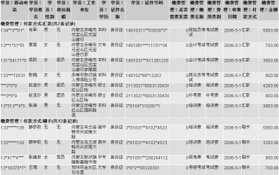 點(diǎn)擊單個(gè)學(xué)員查看頁面的相關(guān)列表,直接添加其他考務(wù)信息。張小玲是報(bào)名人力資源三級(jí)和文秘三級(jí)的學(xué)員,人力三級(jí)學(xué)習(xí)需要代辦考試。繳納人力培訓(xùn)費(fèi)3000元,文秘培訓(xùn)2000元,報(bào)名人力資源管理師考試費(fèi)500元。