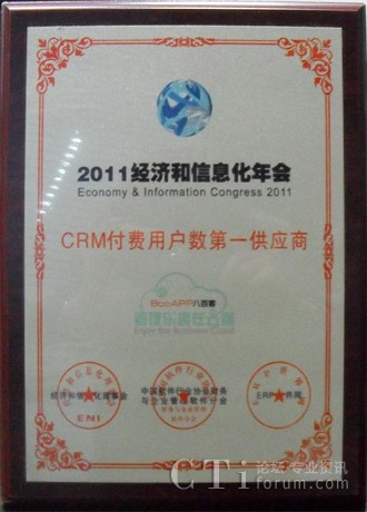 作為全球企業(yè)管理軟件領(lǐng)跑者,八百客參加了此次會議,并就IT業(yè)戰(zhàn)略性發(fā)展、工業(yè)轉(zhuǎn)型升級等問題和與會企業(yè)家進行了深入探討,集中、深刻闡釋產(chǎn)業(yè)精髓,洞悉和把握未來發(fā)展方向,尋求最佳的信息化成長模式。年會期間的招待晚宴穿插各類年度大獎的頒獎典禮,讓與會的政界、學(xué)界、商界等各路貴賓充分交流信息,建立友誼,為達成長期合作奠定良好的基礎(chǔ);诎税倏驮趪鴥(nèi)CRM領(lǐng)域的優(yōu)秀表現(xiàn),本次年會特別授予了八百客“CRM付費用戶數(shù)第一供應(yīng)商”的大獎。