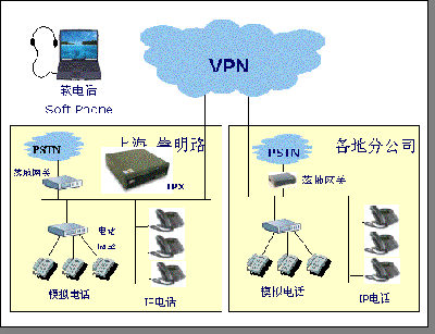 虛擬辦事處/分公司: 企業(yè)沒(méi)有常駐辦公機(jī)構(gòu)的地區(qū),可以通過(guò) IPX 系統(tǒng)將用戶(hù)的電話(huà)咨詢(xún)通過(guò) INTERNET 傳輸?shù)娇偛刻幚。?dāng)?shù)卦O(shè)置一套網(wǎng)絡(luò)電話(huà)終端