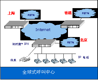 美國訊時捷™科技公司的“訊時捷™™ IPX”系統(tǒng)平臺,可以作為分布式的IP呼叫中心,并可利用各地的網關,提供低費用的IP
