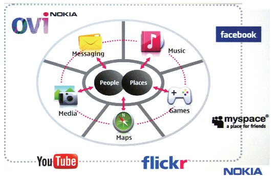 諾基亞的鮮明主張是:移動互聯(lián)網(wǎng)的發(fā)展與推進,必須最大限度地開發(fā)融合“人”與“地”的移動應(yīng)用,突顯互聯(lián)網(wǎng)所沒有的一些特性,而絕不能簡單地將互聯(lián)網(wǎng)的應(yīng)用照搬到手機上。