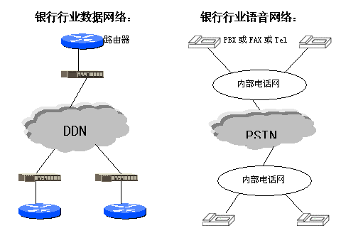 銀行的網(wǎng)絡現(xiàn)狀是:擁有兩個互相獨立的網(wǎng)絡,一為數(shù)據(jù)網(wǎng)絡,一為語音網(wǎng)絡。兩者都必須向電信部門租用線路,這樣就造成了重復性投資,而且以后使用時還需要交納兩筆很大的通信費用。另外在維護上也很不便。造成了人力、物力、財力上的浪費。