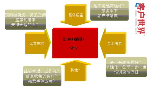 所以,我們認(rèn)為呼叫中心的運(yùn)營(yíng)解決方案,應(yīng)該綜合協(xié)調(diào)人力資源管理、話務(wù)預(yù)測(cè)、自動(dòng)排班、績(jī)效考評(píng)、話務(wù)分析、現(xiàn)場(chǎng)管理、實(shí)時(shí)預(yù)警等各個(gè)現(xiàn)場(chǎng)管理要素。各個(gè)要素之間即是相互獨(dú)立,又相互關(guān)聯(lián)的,系統(tǒng)通過(guò)設(shè)置目標(biāo)值,達(dá)到管理目標(biāo)的均衡,這個(gè)平衡,從最核心的體現(xiàn)來(lái)看,就是一個(gè)完整的KPI體系中各個(gè)指標(biāo)的實(shí)現(xiàn)。