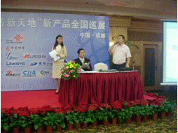 2007年8月15日下午,中國(guó)聯(lián)通、中寬網(wǎng)信"10175商務(wù)新天地"新產(chǎn)品全國(guó)巡展成都站在家園國(guó)際酒店順利召開(kāi)。此站是這次全國(guó)巡展活動(dòng)的第六站。成都站會(huì)議得到了中國(guó)聯(lián)通的大力支持,中國(guó)聯(lián)通數(shù)固部張宇、中國(guó)聯(lián)通四川分公司數(shù)固部副總經(jīng)理彭總、中國(guó)聯(lián)通四川分公司數(shù)固部鐘宇及中國(guó)聯(lián)通的各級(jí)代理商出席此次會(huì)議。