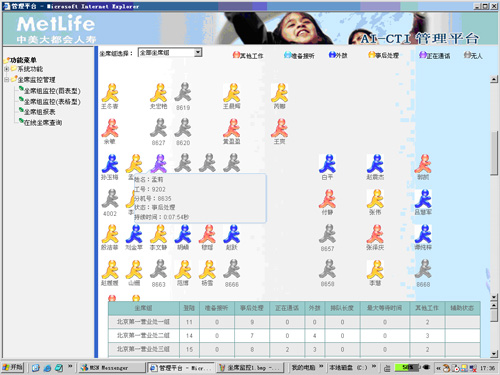 AI-Monitor 實時收集當前所有坐席工作狀態(tài)、 IVR 節(jié)點工作狀態(tài)、以及前置交換排隊設(shè)備的狀態(tài)信息等,并以圖形化界面的方式實時提供各種報告。
