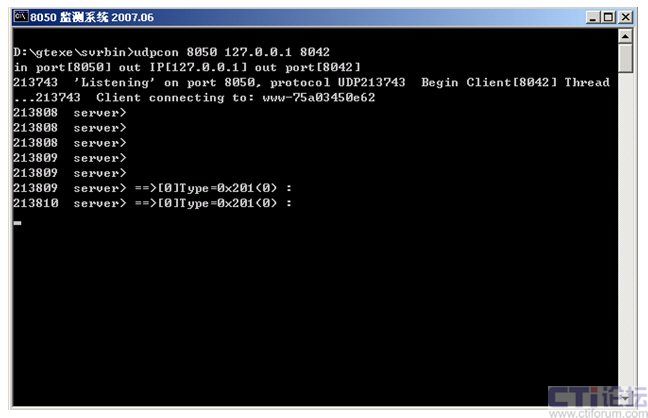 監(jiān)控后臺運行dispport.bat(d:\gtexe\bin>udpcon 8051 127.0.0.1 8044)