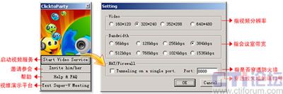 Video Service按鈕,對方就可以在聊天窗口中收到邀請信息,點擊“接受”按鈕后雙方自動啟動并進入Clicktoparty軟件的主界面。您還可以以同樣的操作步驟,陸續(xù)邀請其他好友或聯(lián)系人加入,之后就可以享受Clicktoparty帶給您的強大功能和美好體驗,包括專業(yè)級的音視頻實時溝通、多人文字交流及私聊、桌面共享及遠程協(xié)助、高速的文件傳輸、各種文檔的在線演示和討論等。