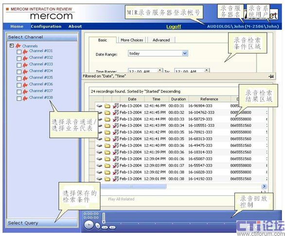 Web介面的錄音查詢及撥放功能,可以多重條件復合式查詢。