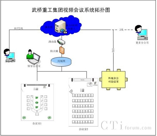 圖:武橋重工集團(tuán)視頻會議系統(tǒng)拓?fù)鋱D