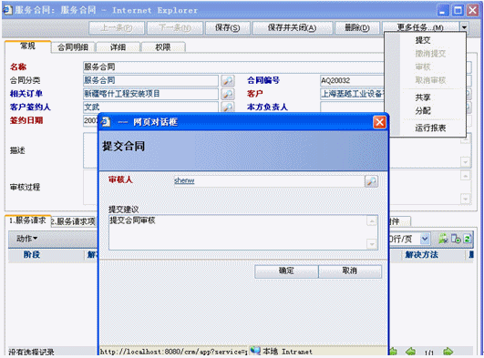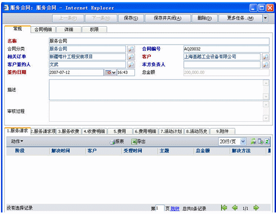 服務(wù)合同是也分為兩種,一種是非公司項(xiàng)目的服務(wù)請求此時(shí)沒有與訂單關(guān)聯(lián);二種是公司項(xiàng)目后服務(wù)請求,此時(shí)可以關(guān)聯(lián)訂單也可以不關(guān)聯(lián)訂單,如果關(guān)聯(lián)訂單就可以將訂單產(chǎn)品明細(xì)導(dǎo)入合同明細(xì)中(導(dǎo)入明細(xì)是可以調(diào)整數(shù)量和價(jià)格的).