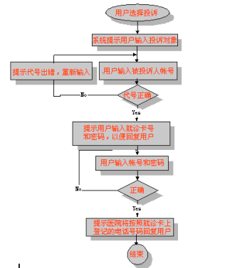 在處理用戶投訴時,要求對醫(yī)院所有服務人員分配代碼。用戶投訴時按照服務代碼進行投訴。同時,醫(yī)院將對所有投訴用戶進行回復。如通告處理結果,向用戶道歉等。對用戶回復時,將按照用戶在申請就診卡時留下的電話號碼進行回復。這種也可以促使用戶留下真實的電話號碼。用戶可以到醫(yī)院電話號碼。